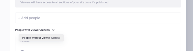 - Alternatively, you can click the dropdown arrow and use the People without Viewer Access filter to help identify other available users to add.