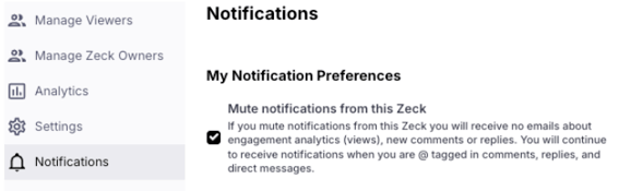 Admins and Zeck Owners can open the Zeck you want to turn notifications off for.