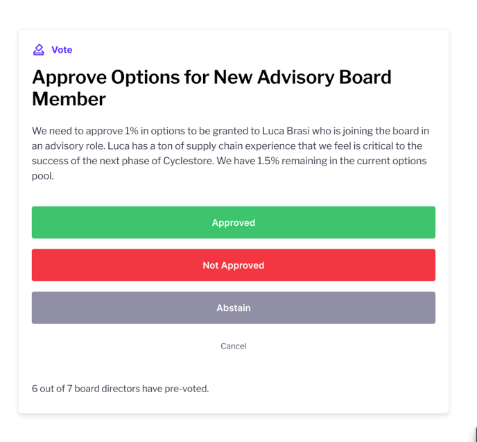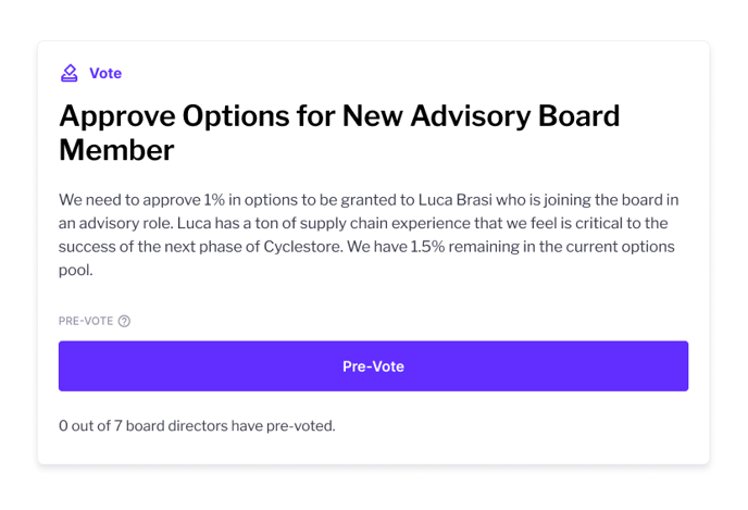 - Clicking the button will allow them to cast a Pre-vote, and they’ll also be able to see how many Pre-Votes have been cast by Board Directors.